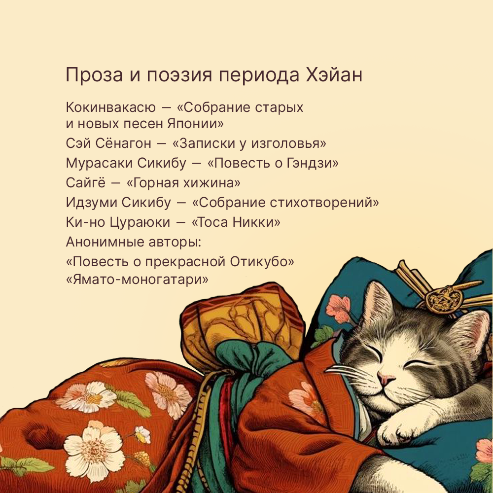 Марина Бочарова-Саковская совместно с дизайнером Ксенией Петовой создала подборку слайдов по средневековой Японской литературе 8 — 12 веков.