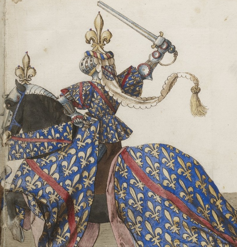 Пару слов скажу об одежде. Геральдика отразилась на костюме Средневековья, причем не только на турнирном. Во время торжеств, церемоний или придворных праздников стали носить одежду цветов герба и украшали ее девизами и вышивкой. При описании жизни Людовика 9 Святого упоминается, что оруженосцы и стража герцога Пуатье были одеты в наряды с его гербом. В описании праздника от 1187 года упоминалось что представители Фландрии были в красной одежде с золотыми леопардами, а представители Вермандуа в зеленой с золотыми орлами. Во время конца царствования Людовика 9 дамы стали носить платья с изображением гербов. Справа изображали герб мужа, слева свой. Обычай этот постепенно разошелся на другие страны.