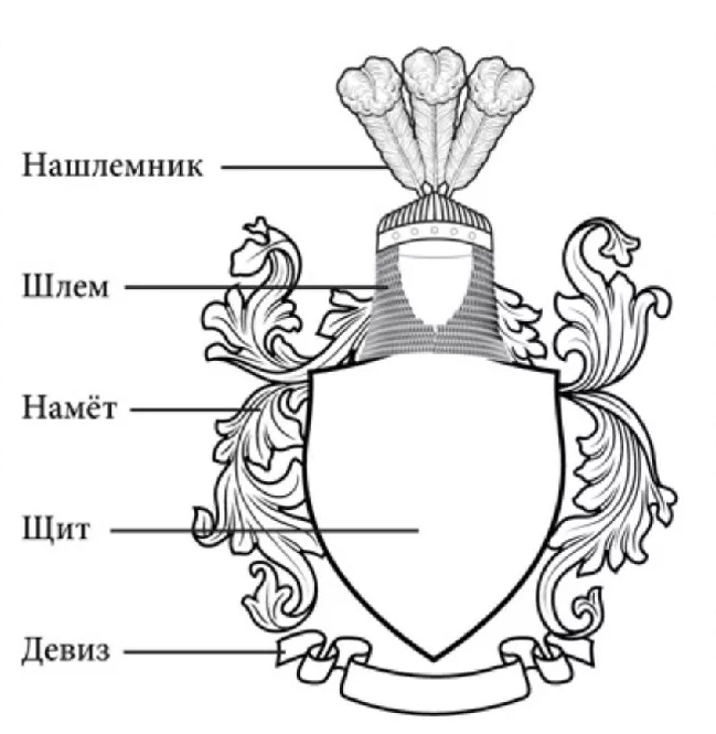 На макушке турнирного шлема рыцаря располагалась фигура под названием нашлемник. И это могло быть что угодно. Зверь, птица, оружие или даже фигура человека. Это мог быть предмет из семейной легенды или святой покровитель воина. Этот элемент и перешел на герб в том виде в котором использовался для турнира.